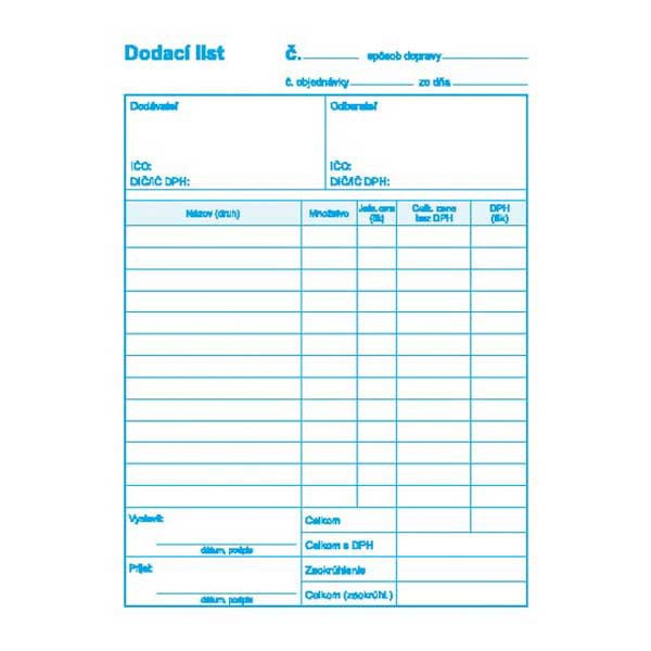 Dodací list s DPH A5 samo prepisovací