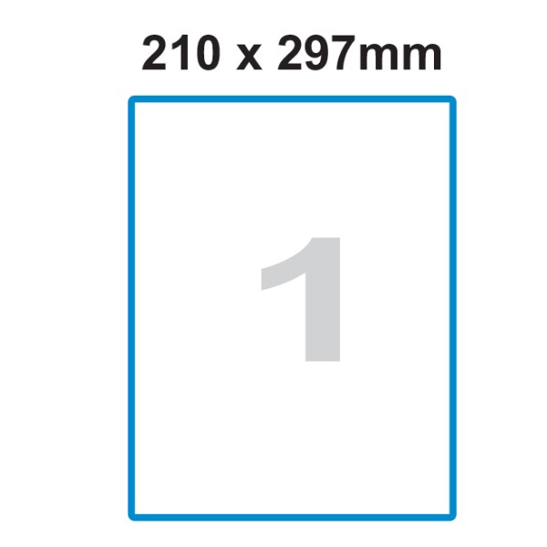Cenovo výhodné etikety na hárkoch A4 vhodné do laserových a atramentových tlačiarní, ako aj kopírovacích strojov. Rozmer etikety 210×297 mm, počet etikiet na hárku 1, balenie 100 hárkov.
