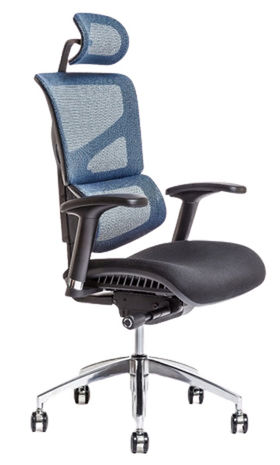 Univerzálne kolieska, kovový kríž, synchrónna mechanika s aretáciou v 4 polohách, sedadlo a operadlo zo samonosnej sieťoviny, hĺbkovo nastaviteľný sedák, bedrová opierka, 3D nastaviteľné opierky rúk.