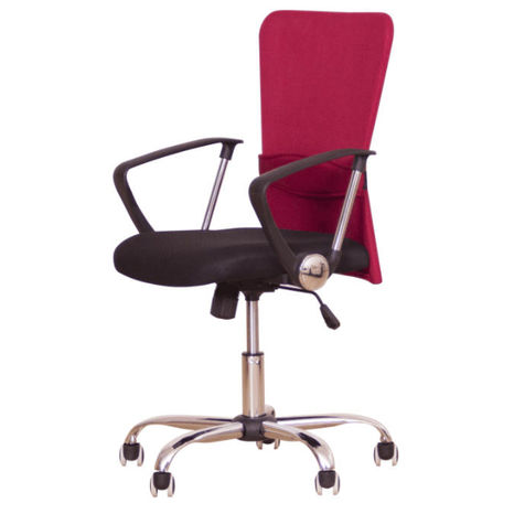 Kancelárske kreslo, sieťka + chróm, farba: sedák čierny, opierka červená Rozmery (ŠxHxV): 59x63x102 cm, výška sedu: 45-55 cm. Nosnosť 110 kg. Dodávané v demonte.