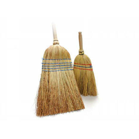 Klasická ciroková metla s drevenou rúčkou, prešívaná.