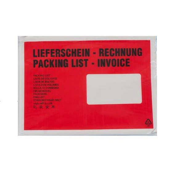 Priehľadné samolepiace vrecká s červenou potlačou vhodné na priloženie sprievodných dokumentov k balíkom. Balenie 100 ks. Rozmer: 240×164+18CH