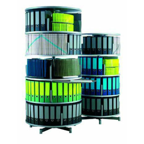 Otáčací systém pre zakladače (šanóny), účtovné doklady, archivačný materiál, knihy atď,Výška medzi jednotlivými samostatne sa otáčajúcimi policami (pomocou klzných ložísk) sa dá ľubovoľne nastavovať, Hrany políc sú chránené ABS systémom pre dlhú životnosť,Stavebnicový systém, možnosť dokupovať jednotlivé poschodia, každé poschodie sa otáča samostatne.Priemer systému: 80 cm ,Výška: 190 cm ,Max.počet zakladačov: 120 ks