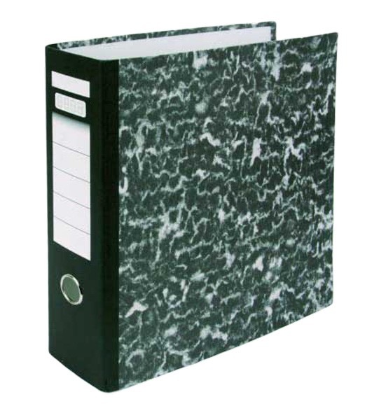 Zakladače so štruktúrovaným papierovým poťahom mramorového vzoru, páková mechanika, formát A4. Vybavený chrbtovým krúžkom. Šírka chrbta 8 cm. Väčšie balenie: 20 ks. Farba čierna. Chrbát: 8 cm. Farba: čierna.