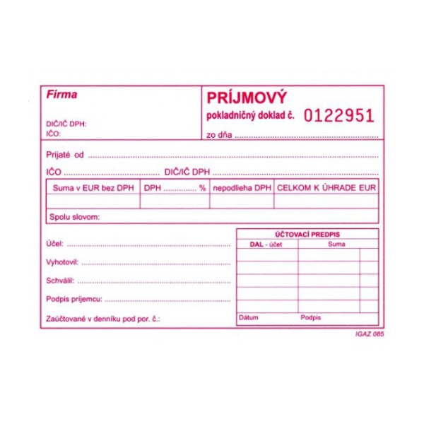 Príjmový pokl. doklad samoprepis číslovaný