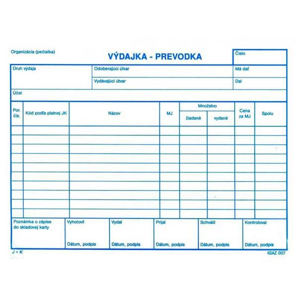 Tlačivo: Výdajka-prevodka A5 samoprepis bez DPH
