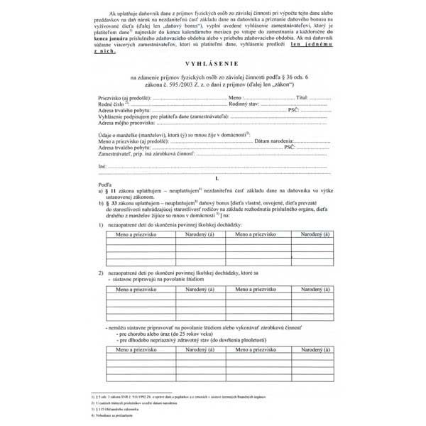 Tlačivo: Vyhlásenie k zdaneniu.